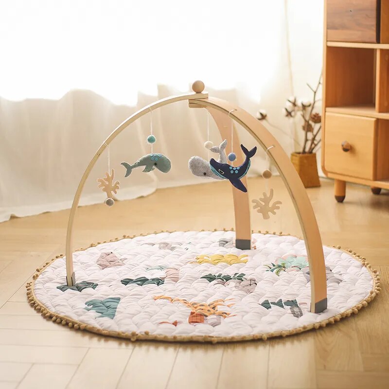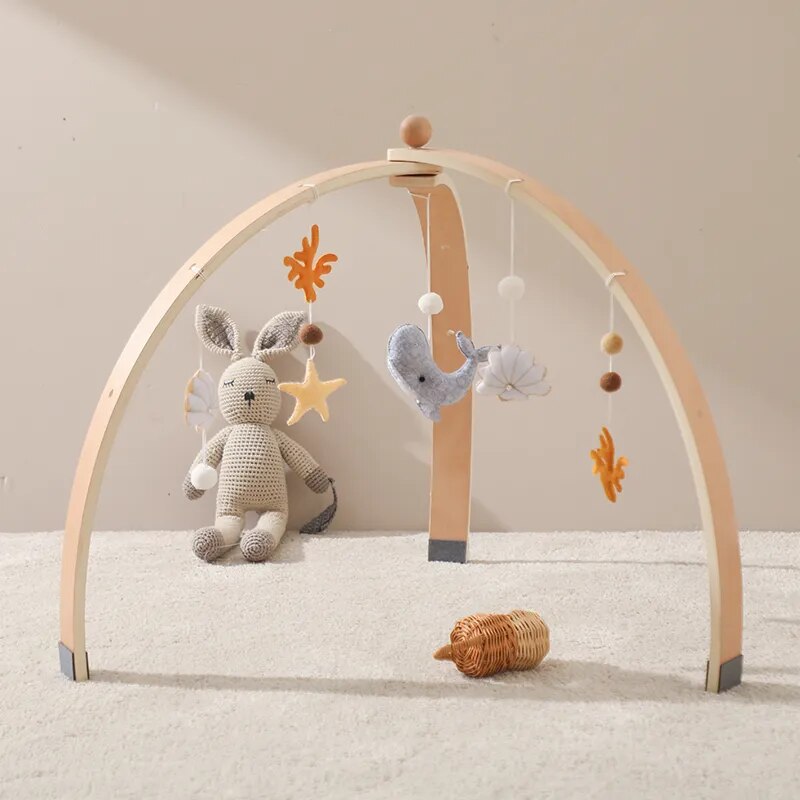Introduce our delightful wooden Nordic Baby Gym! Crafted with love and care, this whimsical playtime accessory is designed to engage and entertain your little one. Made from natural, eco-friendly wood, it features a sturdy frame with soft, colorful hanging toys that will captivate your baby's attention. The gentle movements and delightful sounds of the toys will stimulate their senses and encourage their development. With its easy assembly, our Nordic Baby Gym is the perfect addition to your little one's playtime adventures. Let the fun begin!