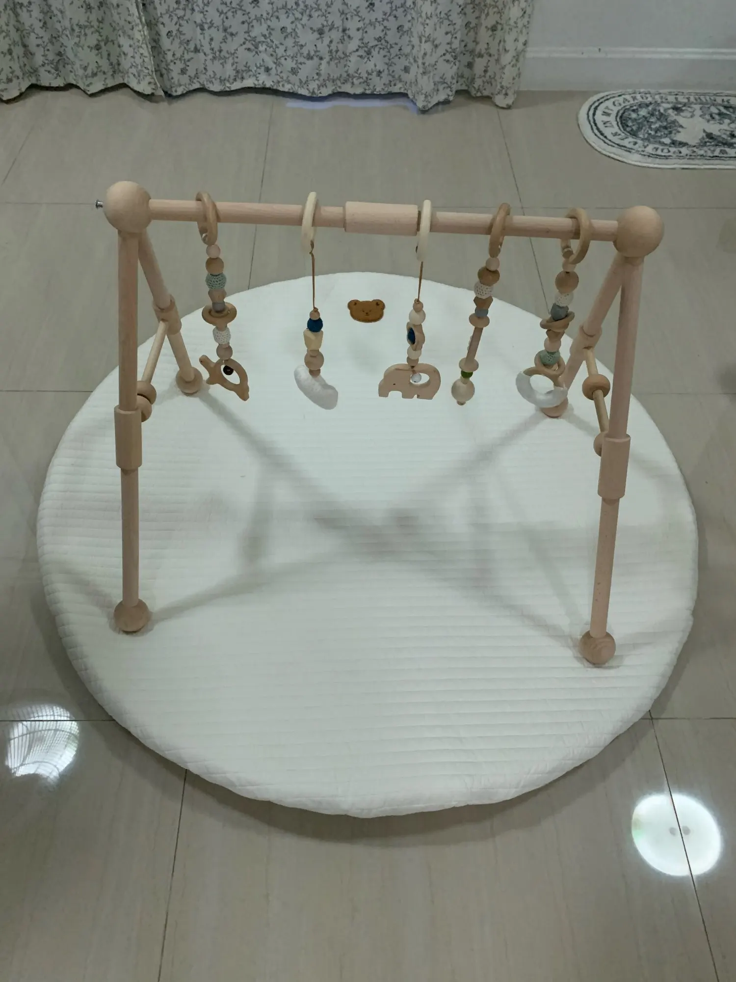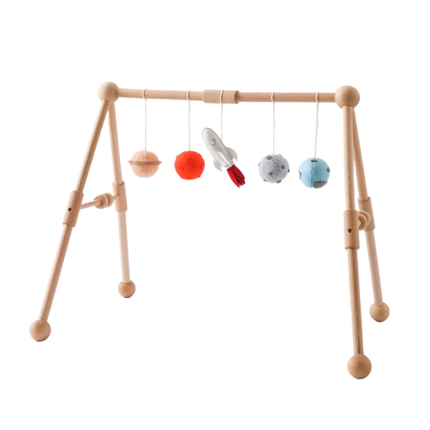 Introducing our delightful Timber Tots Baby Gym. Crafted with love and care, this whimsical playtime accessory is designed to engage and entertain your little one. Made from natural, eco-friendly wood, it features a sturdy frame with soft, colorful hanging toys that will captivate your baby's attention. The gentle movements and delightful sounds of the toys will stimulate their senses and encourage their development. With its easy assembly, our Timber Tots Baby Gym is the perfect addition to your little one's playtime adventures. Let the fun begin!