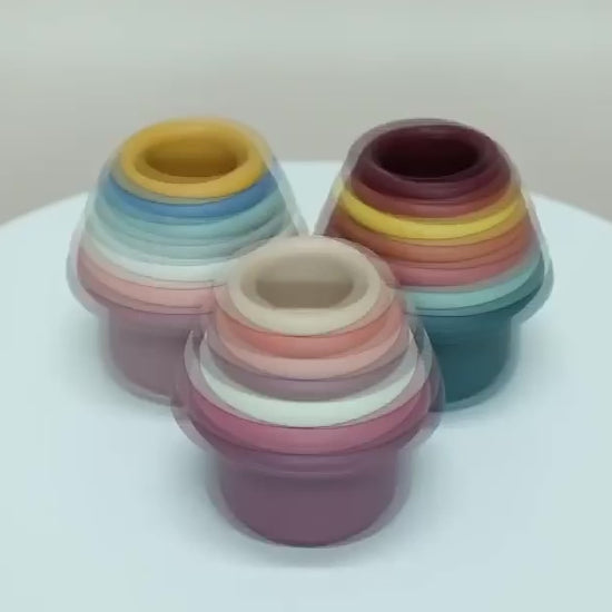 Enhance your child's developmental journey with the Silicone Stacking Cup Tower, a delightful and engaging toy that combines fun and learning most charmingly.