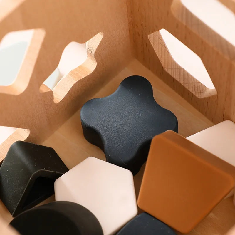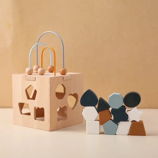 Explore the world of early childhood education with our Shape Sorting Cube. Designed to engage and stimulate young minds, these toys are crafted with care to provide a holistic learning experience. The set includes vibrant silicone geometric shapes that fit seamlessly into a wooden box, encouraging shape recognition, stacking skills, and problem-solving abilities in infants. Elevate playtime into a valuable educational journey with these meticulously crafted Montessori-inspired toys.