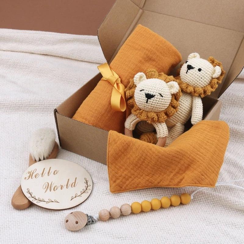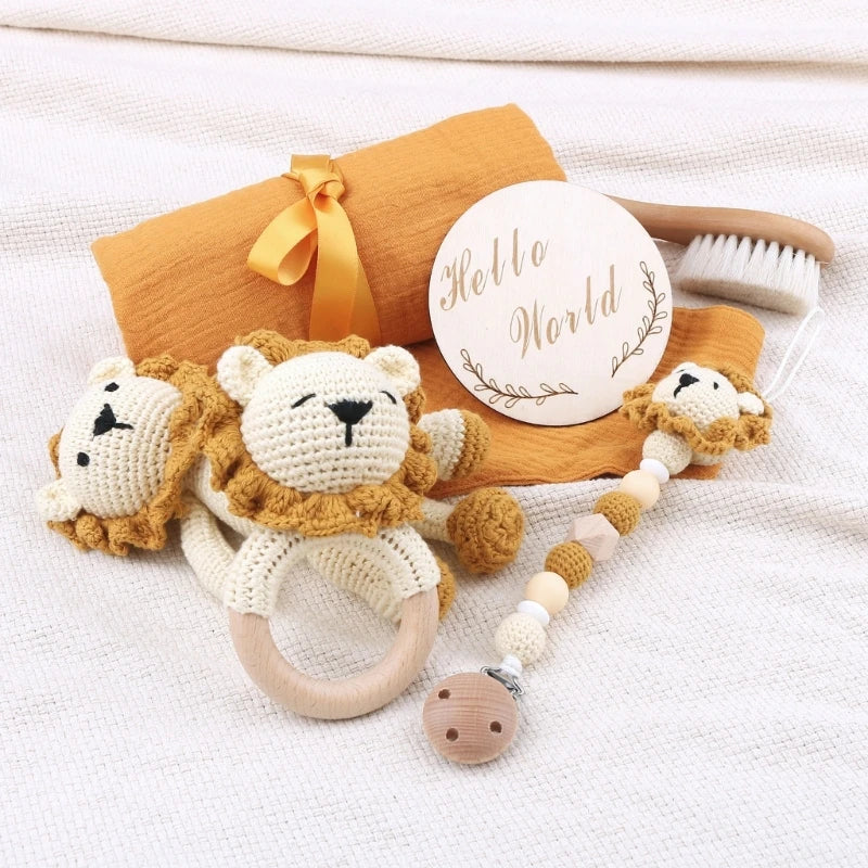 The Lion Soothing Set is an ideal gift to give on the occasion of a birth, suitable for babies, and composed of a set that includes essential and useful accessories for everyday life.