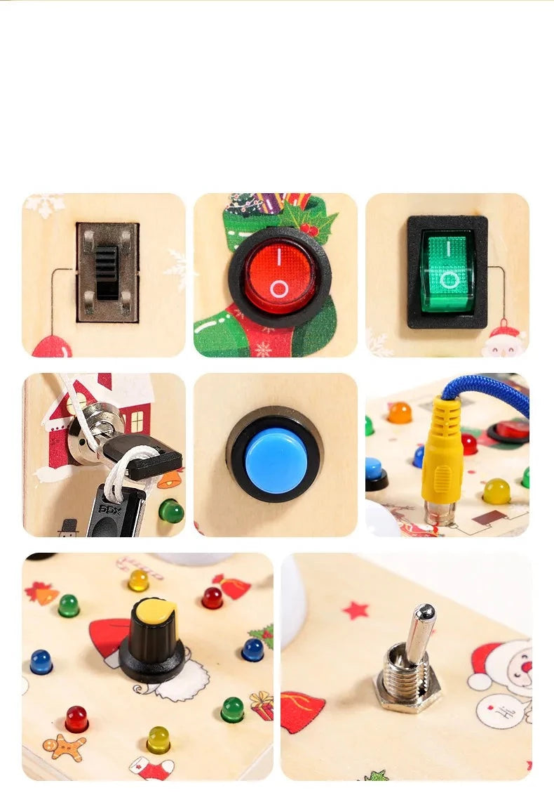 The LED Busy Board is perfect for children, toddlers switch on various switches with suitable LED lights, promote children's logical thinking, arouse their curiosity, and promote hand-eye coordination, logical thinking, and fine motor skills of children. It is an excellent Montessori preschool toy.