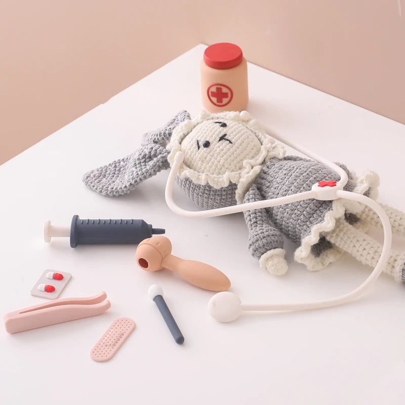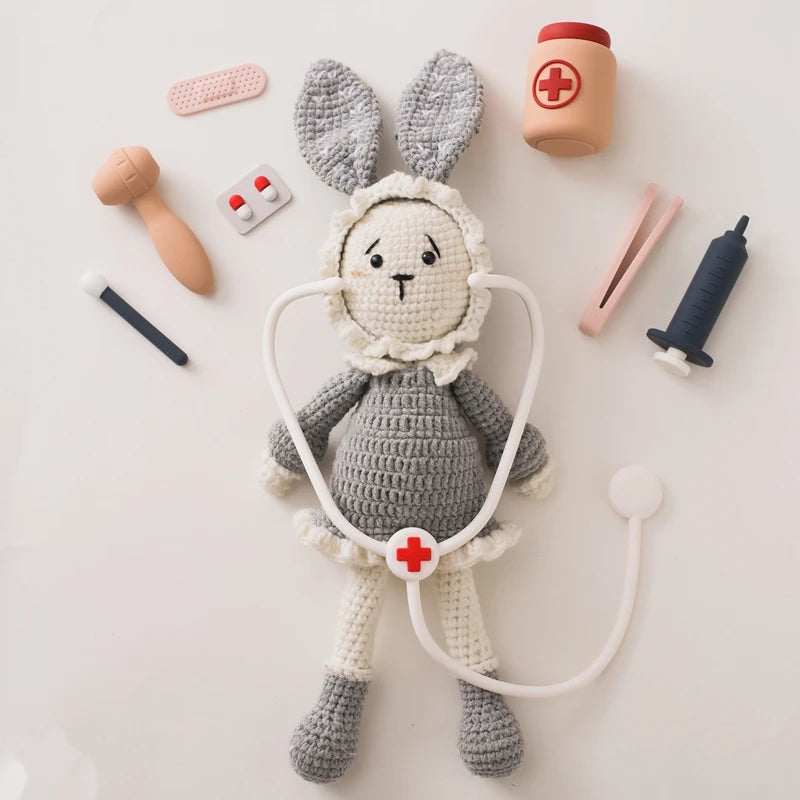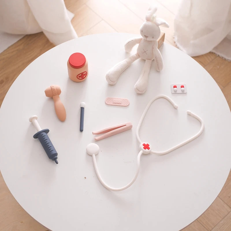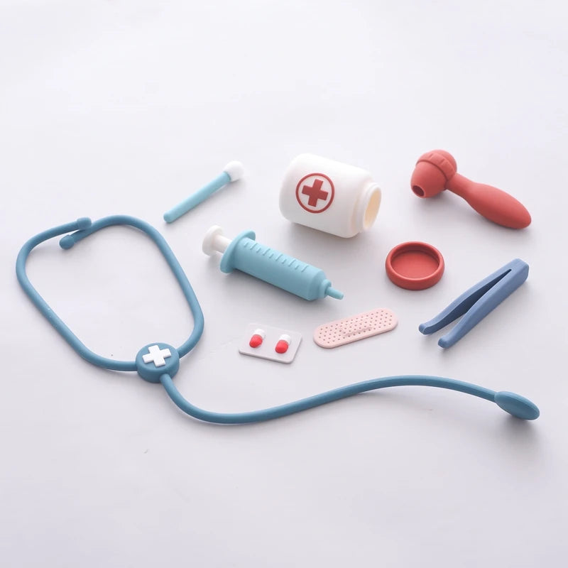 Encourage imaginative play and alleviate hospital fears with the Silicone Medical Kit. This educational toy set is designed to provide endless fun while helping your child understand and familiarize themselves with medical tools in a safe and playful environment. Crafted from 100% food-grade silicone, this kit is perfect for your little doctor's pretend play sessions.
