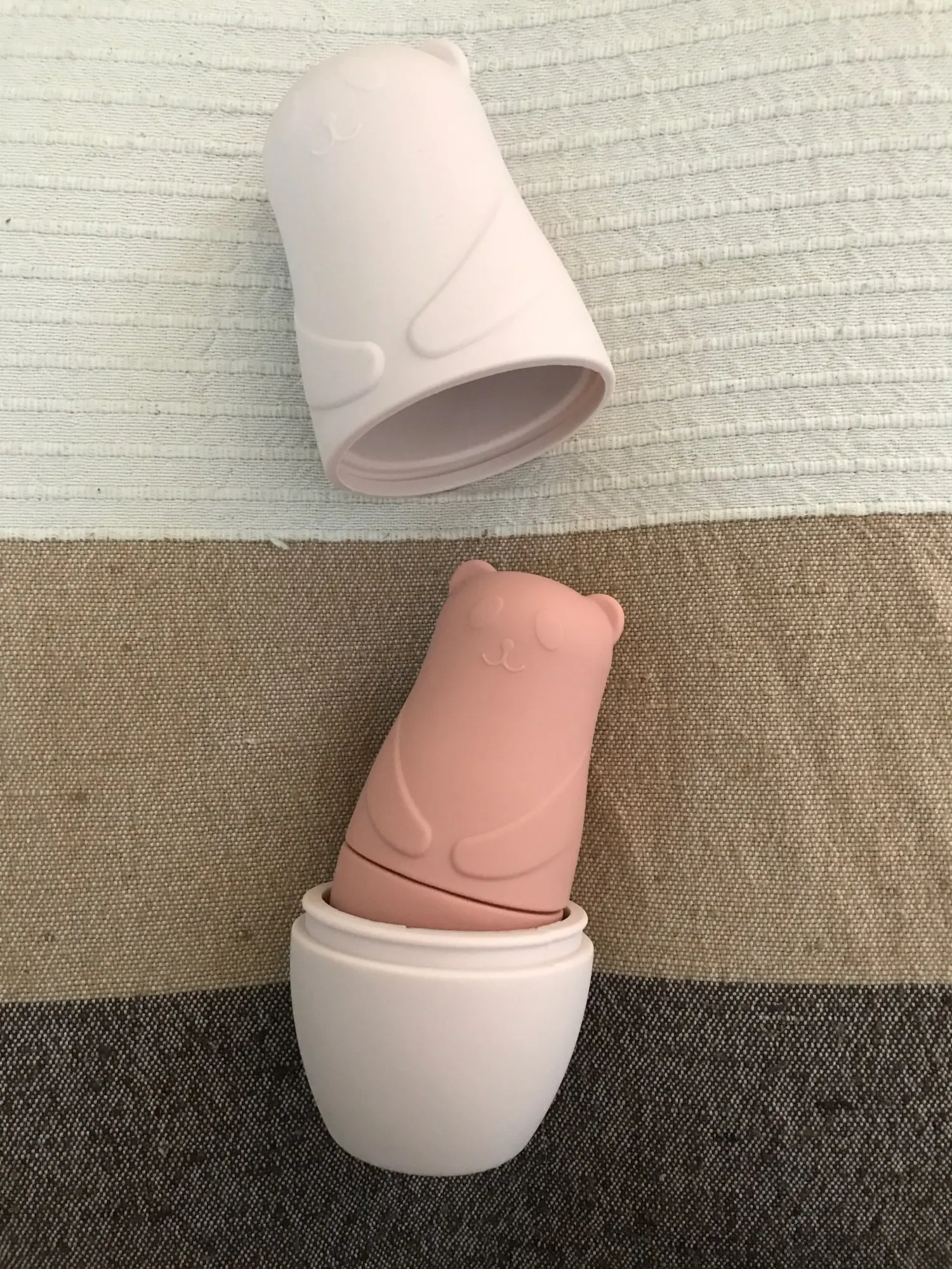 They are very good, they are made of silicone, and they have loved it and although when he gets tired of playing to take out and put one inside the other and gives him to throw them, I am not worried. Good buy