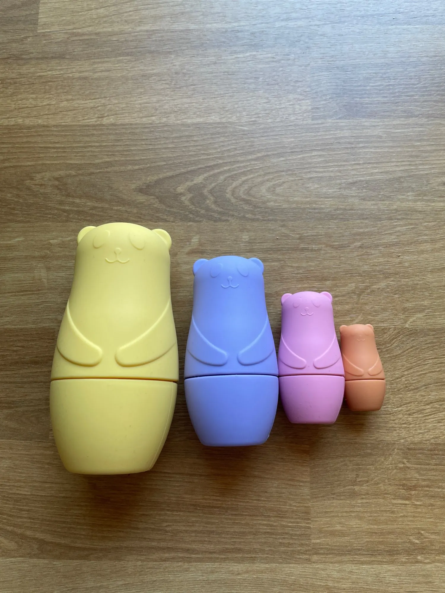 - Design: The set features a series of bear-shaped dolls that nest within each other. The dolls come in various sizes and pastel colors, making them visually appealing and fun to play with.
