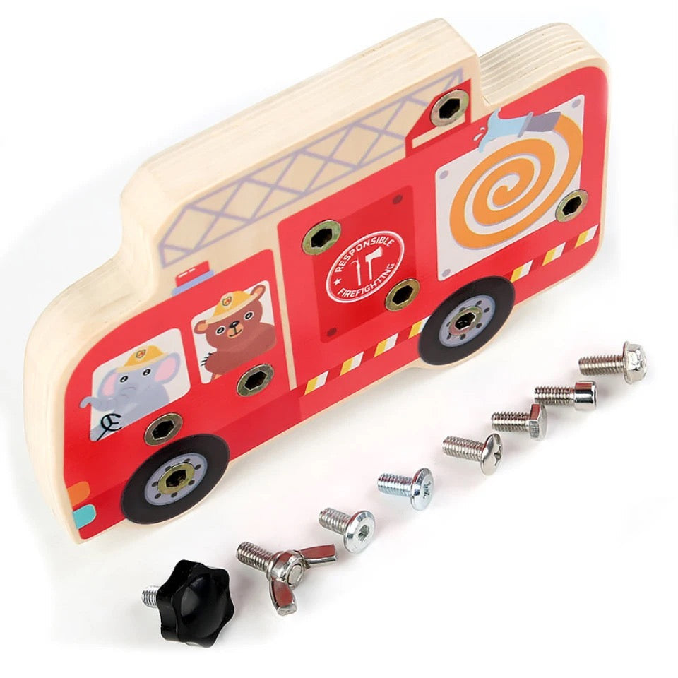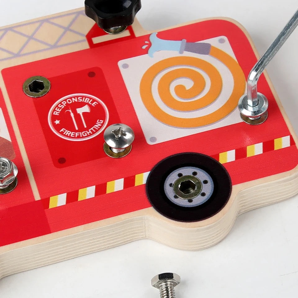 - Sensory Stimulation: The Montessori Educational Busy Fire Truck provides a multisensory experience, promoting tactile exploration through the use of a screwdriver on the wooden board.