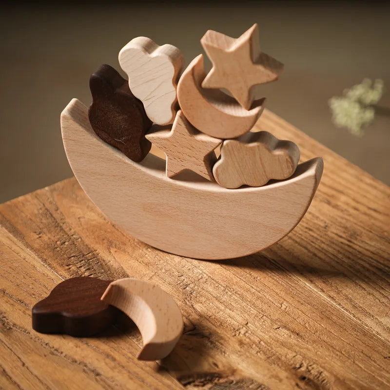Stellaluna Balance are a very popular children's educational toy, made of natural wood and shaped like stars and moons. Such toys can help a child exercise hand-eye coordination, imagination and creativity, as well as improve spatial perception and color recognition.