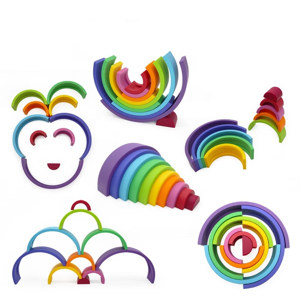 Introduce your child to the wonders of colors and shapes with our Montessori-inspired Rainbow Stacker Toy. Designed to captivate young minds and foster creativity, this stacker toy is perfect for enhancing your child’s development. Made from 100% food-grade silicone, it ensures safety and durability, while its vibrant colors and smooth edges make playtime both educational and fun.