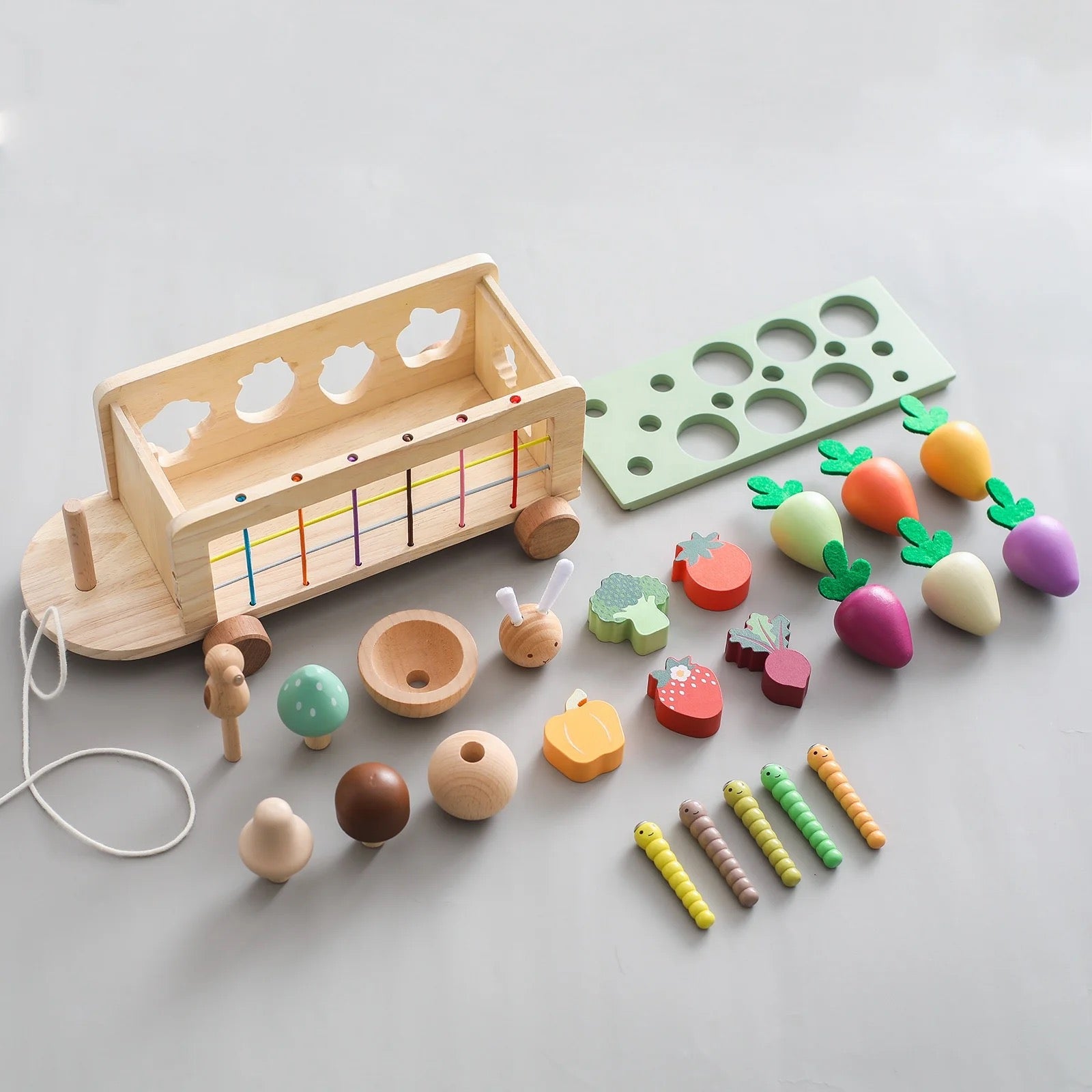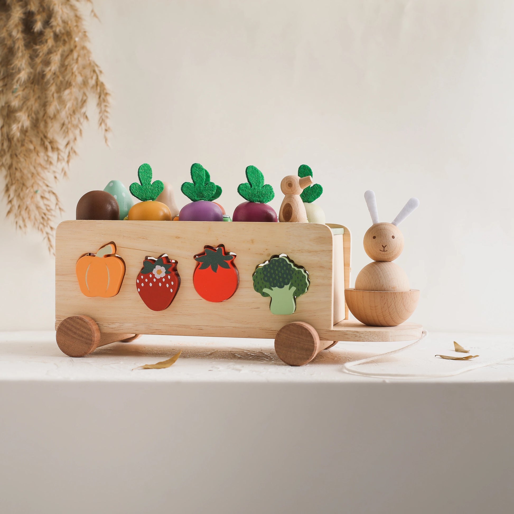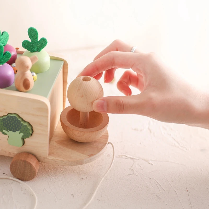 Introduce your child to the joys of gardening and nature with the Garden Pulled Car. This beautifully crafted wooden toy set is designed to enhance fine motor skills, hand-eye coordination, and imaginative play. The set includes a variety of colorful wooden vegetables, a charming rabbit, and tools to "harvest" the crops. Perfect for pretend play, this toy encourages curiosity and a love for nature in young children.